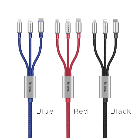 U17 Capsule 3-in-1 charging cable for Lightning / Micro USB / Type C aka USB C 1.5m wire sewn braid L-shape USB-A male Zinc alloy joint