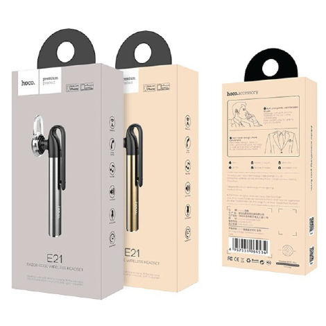 E21 Razor-Edge Bluetooth® Headset with mic lightweight earbuds single ear earphone 45mAH battery power display wireless earpiece. Pen holder clip design.