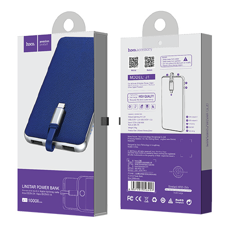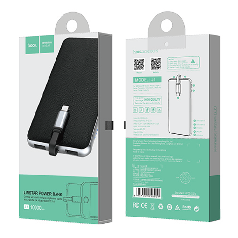 HOCO J1 LINSTAR POWER BANK (10000MAH) supplied with built-in Lightning-connector cable, magnetic absorption for perfect management, easy to carry.
