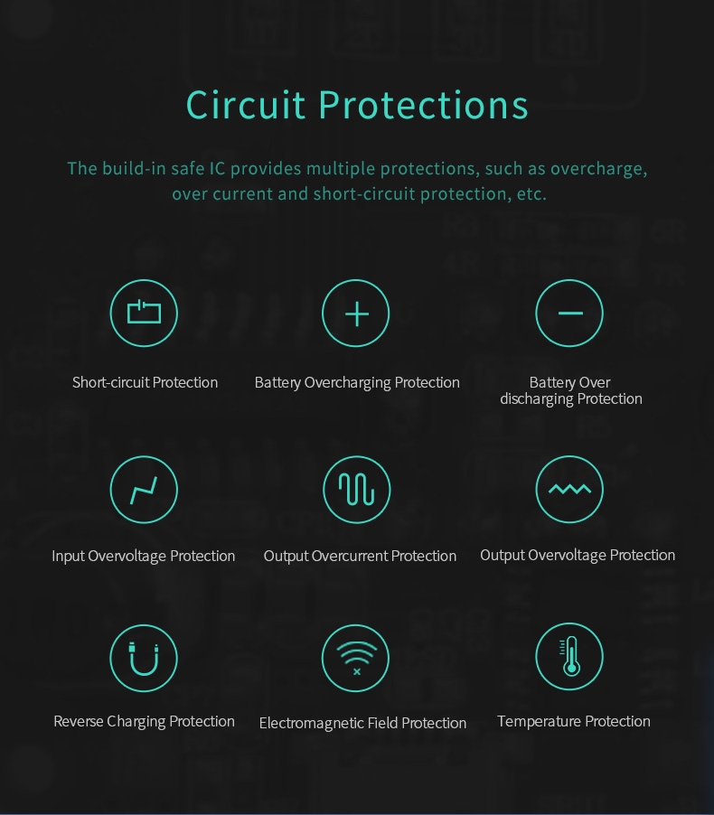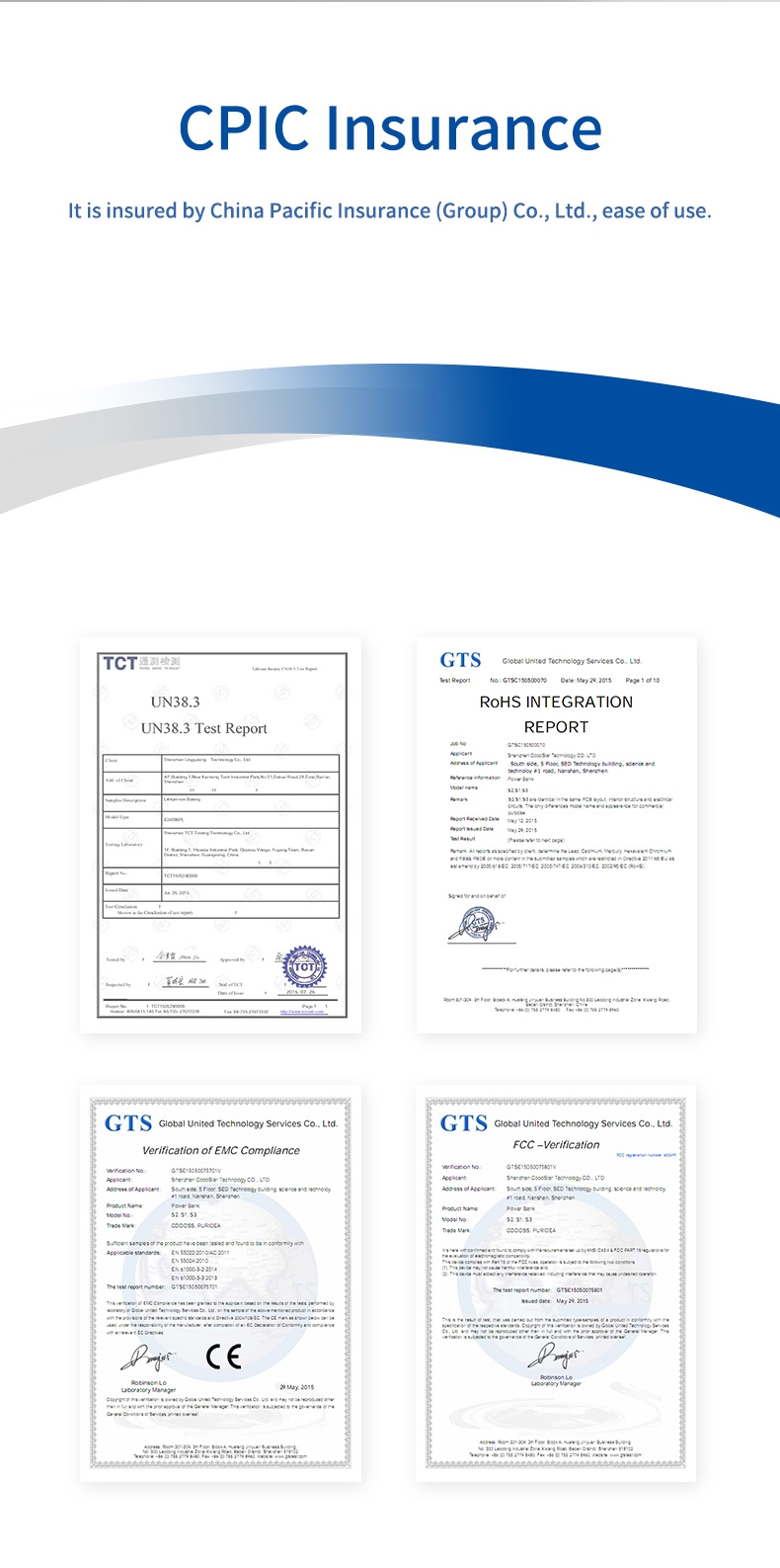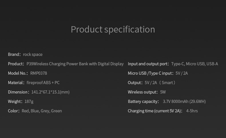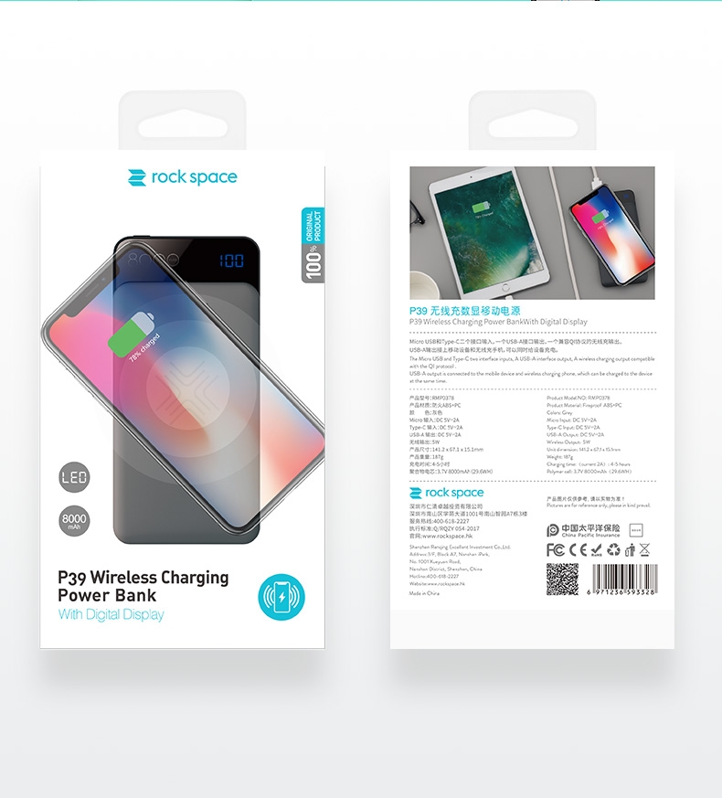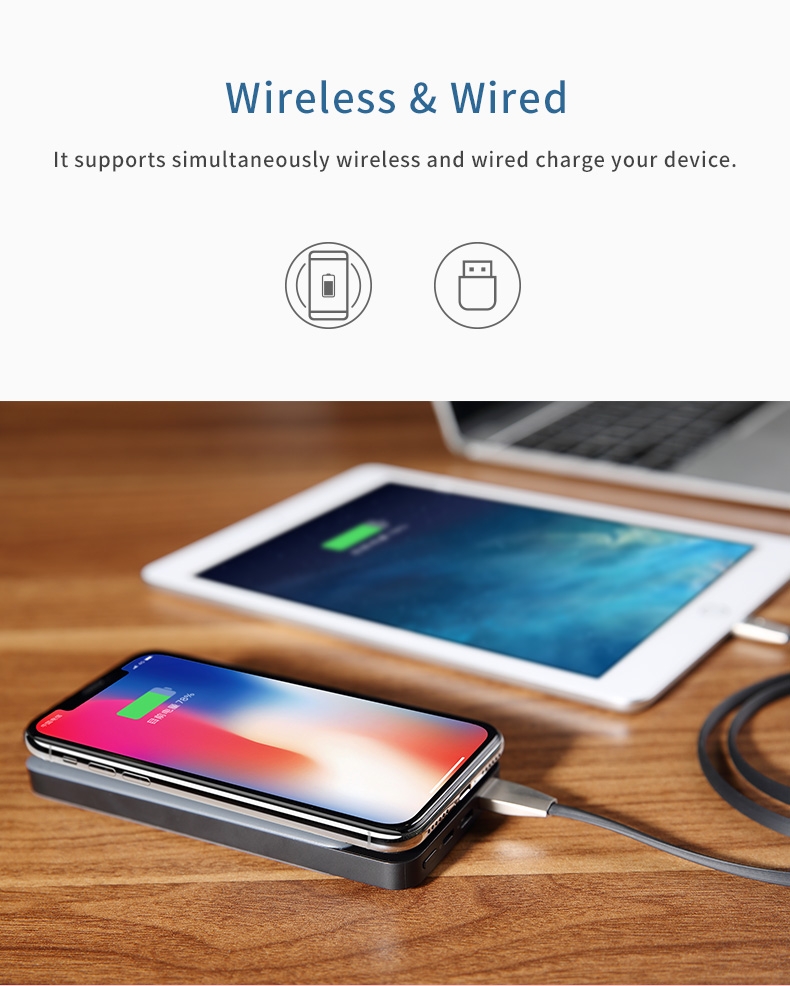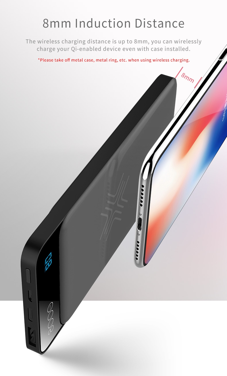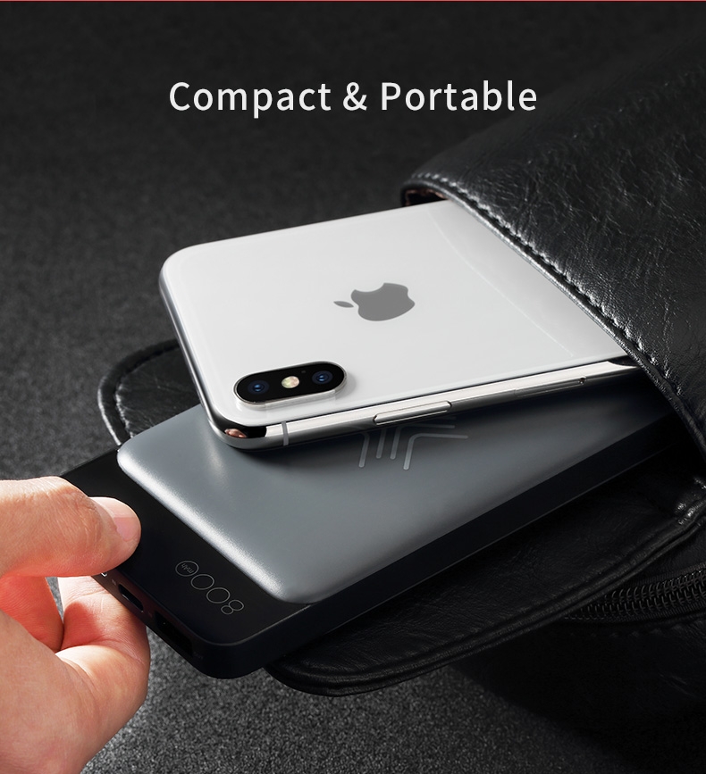 Small size with 8000mAh large capacity, it is portable and juices up your device at anywhere and anytime. It provides low power cosumotion in standby mode, no electric leakage.