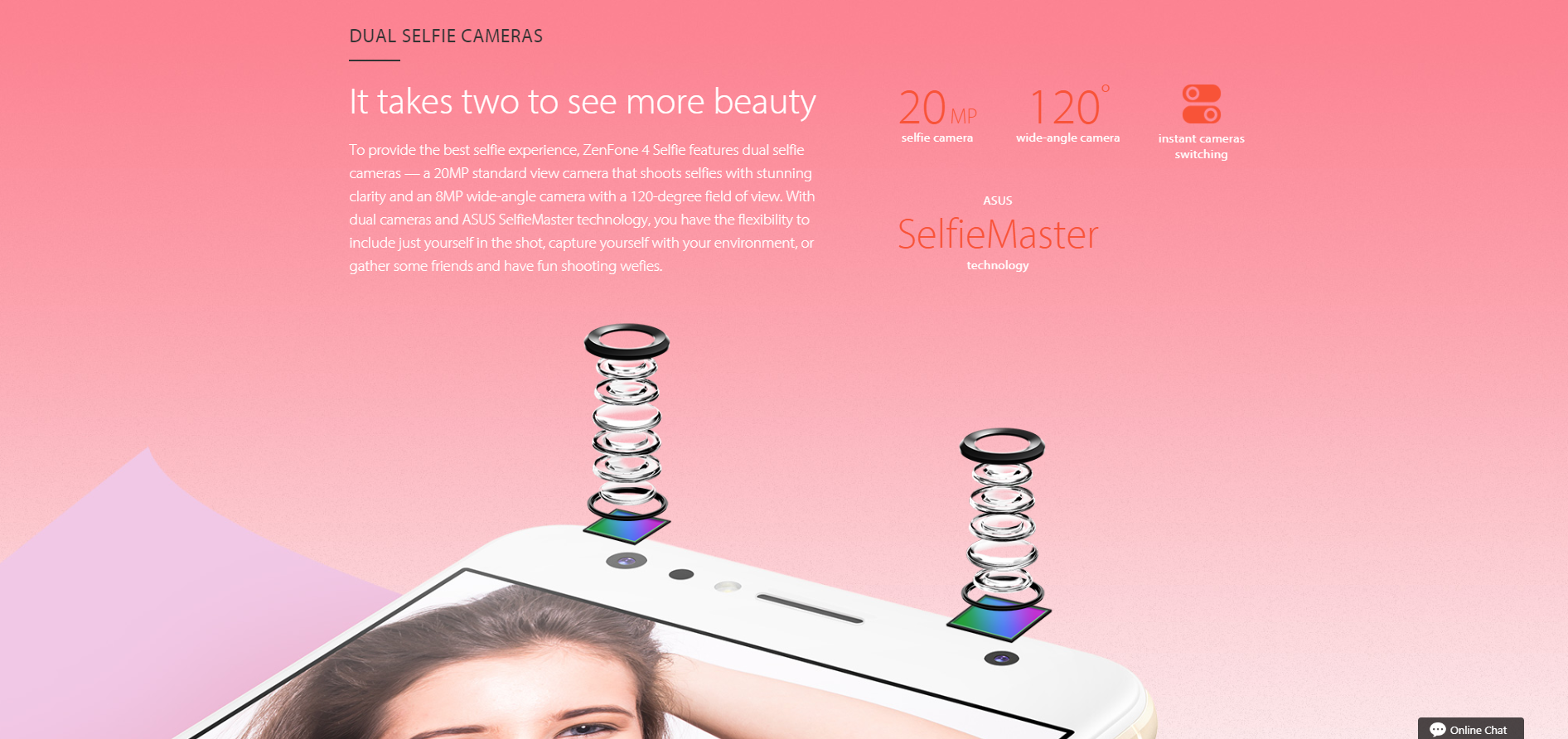 ZenFone 4 Selfie helps you portray the perfect version of yourself to the world, redefining what a selfie can be. Enjoy a great selfie experience with 20MP* dual selfie