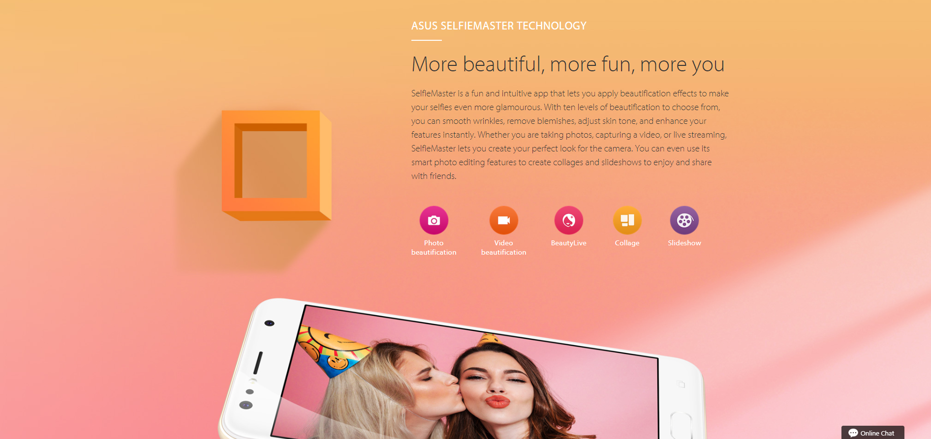 cameras that let you capture more people, more scenery and apply beautification effects. Whether you are taking photos, shooting videos or live streaming, ZenFone