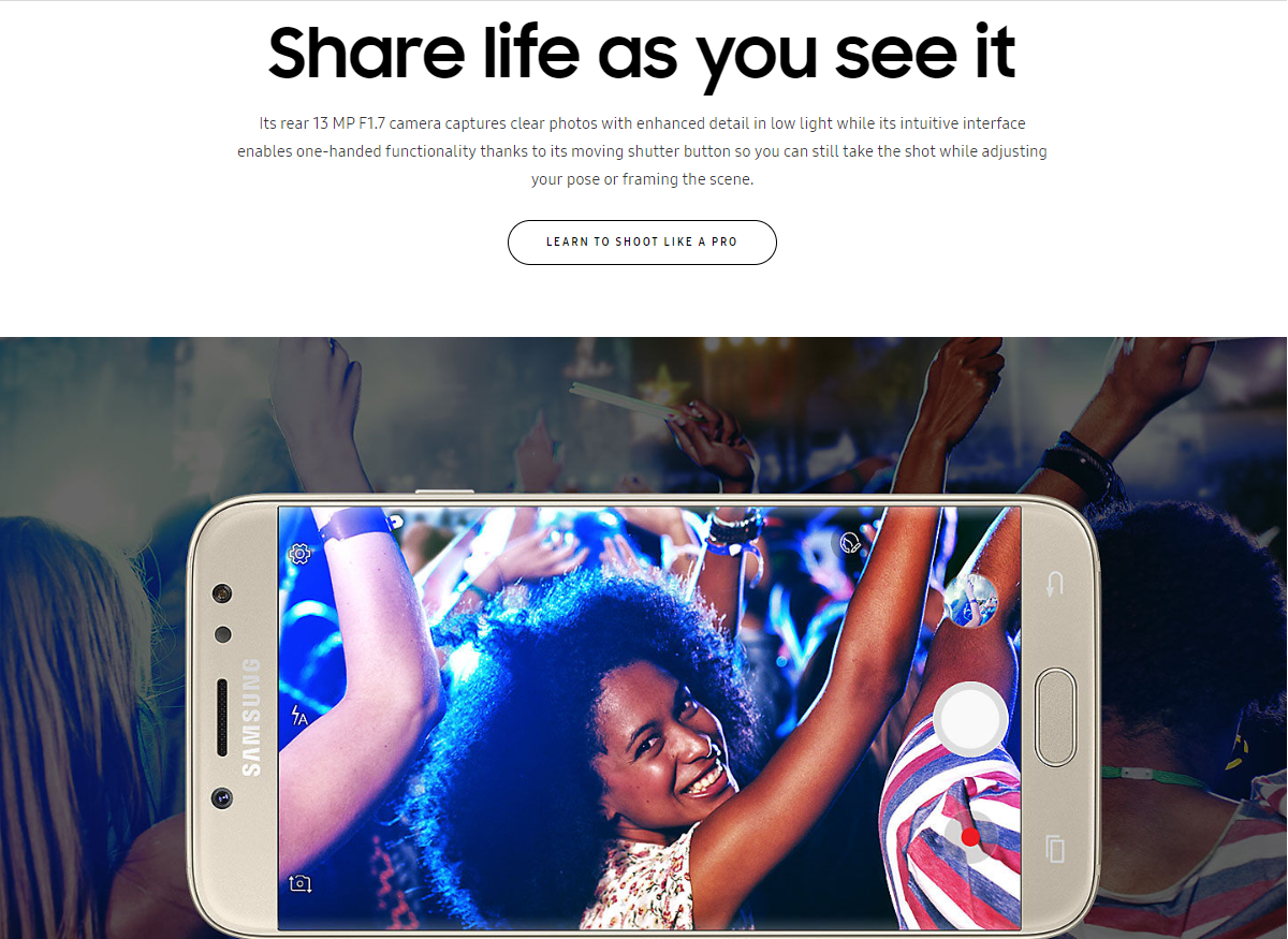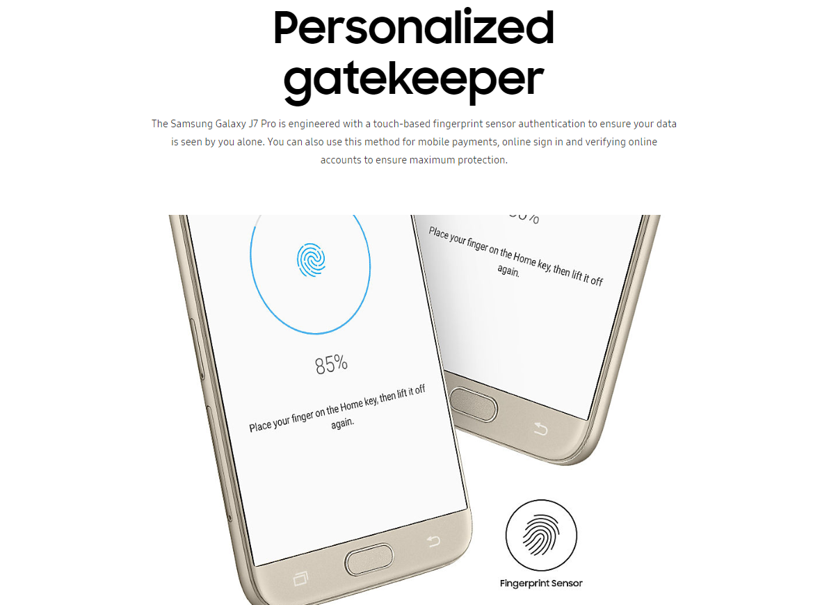 When style complements functionality. Designed with the strictest attention to detail, the new Samsung J7 Pro features a stunning uniform metal finish with zero camera protrusion for superior grip and 2.5D Glass shielding its 5.5” Full HD Super AMOLED display for added durability.