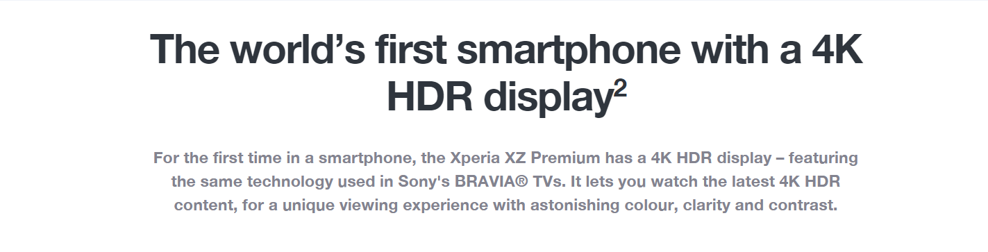 The Xperia™ XZ Premium features the new Motion Eye™ - a camera so advanced it captures motion that the human eye can’t see. And with its unified design, astonishing 4K HDR display and intelligent features, it’s our most ground-breaking smartphone to date.