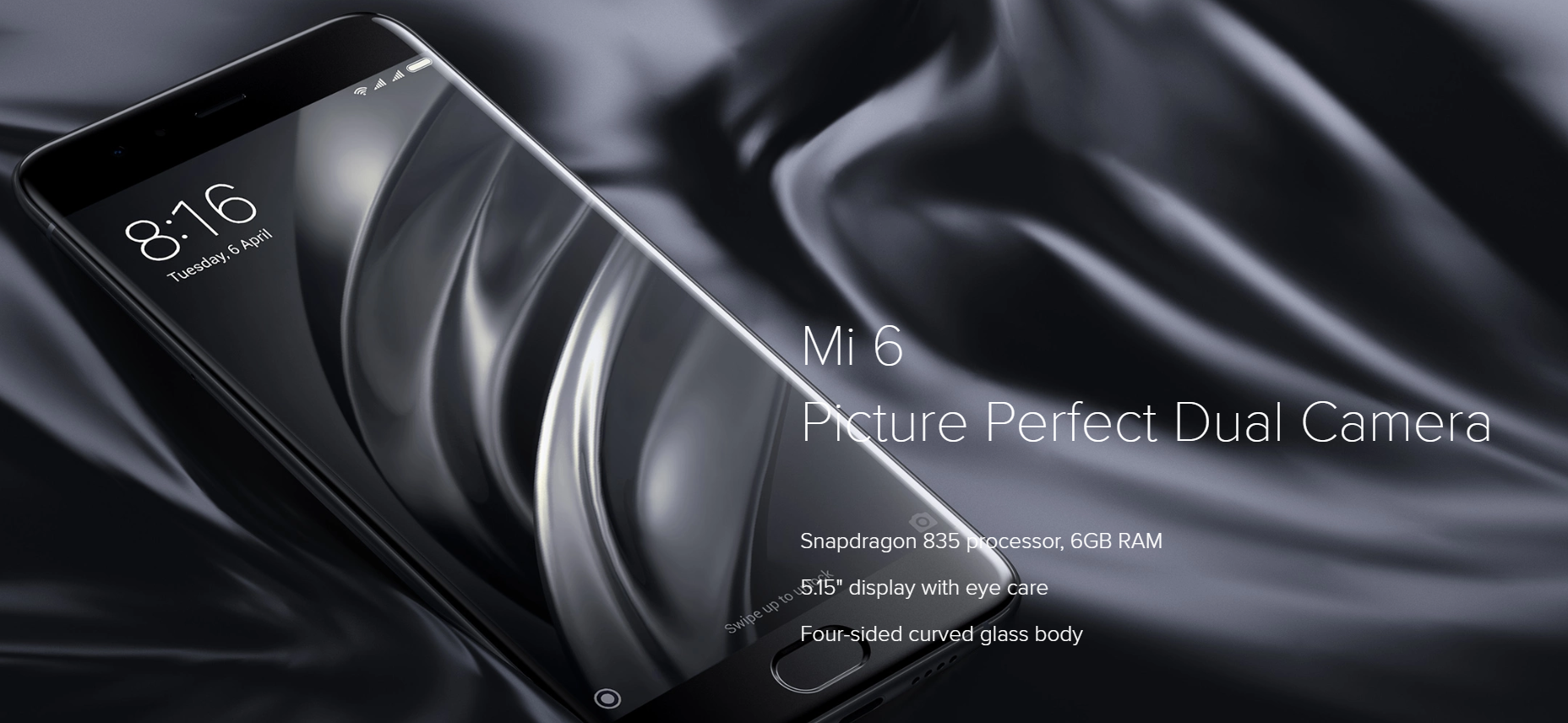 Mi 6 Picture Perfect Dual Camera Snapdragon 835 processor, 6GB RAM 5.15" display with eye care Four-sided curved ceramic/glass body